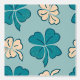 Green Beige Clover Shamrock Hand Drawn Pattern Wallpaper. Beautiful and simple 4 leaves clovers on green and beige colours on a white background. The design is a digital drawing.