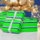 This wrapping paper design features a pattern of stripes having colours like green, beige, dark blue, and lime. Wrapping paper like this might be used when wrapping presents or gifts being given in celebration of a birthday, a wedding, an anniversary, or some other event.