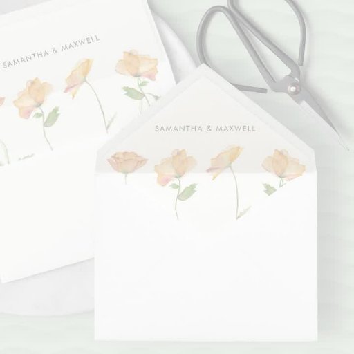 Finish your watercolor poppies wedding invitation set in elegant style with Do Tell A Belle's monogram belly bands for invitations in a sage green with your initials in traditional script lettering. To see more paper wedding invitation ribbon and the entire suite by Victoria Grigaliunas visit www.zazzle.com/dotellabelle