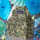 A dynamic camouflage design blending vibrant shades of green, black, and brown, creating a visually compelling pattern that seamlessly integrates with natural environments. This versatile pattern provides optimal concealment.