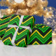 A bold and dynamic chevron zigzag pattern featuring striking shades of green, black, and yellow. This high-contrast design adds a modern and energetic flair to your gift.