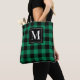 Green Black Buffalo Plaid Monogram Initial Tote Bag