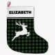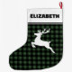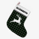 Green & Black Buffalo Plaid with Reindeer Custom Large Christmas Stocking