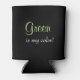 Great can cooler with a fun design stating your colour so you know which can is yours! The background is black. Text for the quote is "Green is my colour!" in a nice typography mix of green and white. Check out our other "my colour" can coolers too!