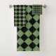 Green Black Chequered Diamond Pattern Bath Towel Set