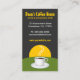 © Sunny Mars Designs. Green, Black and Yellow Morning Coffee Cafe Cafe Punch Cards – Trendy, stylish, grey, green and yellow vertical coffee shop or cafe loyalty punch cards with steaming coffee cup in white mug on table with rising sun against charcoal or dark grey background.