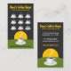 © Sunny Mars Designs. Green, Black and Yellow Morning Coffee Cafe Cafe Punch Cards – Trendy, stylish, grey, green and yellow vertical coffee shop or cafe loyalty punch cards with steaming coffee cup in white mug on table with rising sun against charcoal or dark grey background.