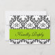 Green Black Damask Wedding Invitation RSVP Card. Customise with your information.