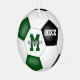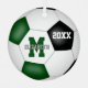 This team colours soccer themed ornament for a girl or boy features the realistic image of a soccer ball upon which you can customise the athlete's name, monogram and commemorative year - some of the typically black panels of the soccer ball graphic have been recolored green - by katz_d_zynes