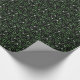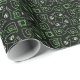 A tribal looking repeating pattern of stylised green lizard heads with eyes wide open on a black background.