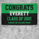 Hang this Green & Black Minimalist Graduation Party Banner to honour your graduate. Personalise with your grad's name, school, and class year. This bold school colours banner features a classic font and plenty of school spirit.