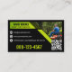 Make a lasting impression with this professionally designed business card, perfect for landscaping, lawn care, and tree trimming services. The sleek black and lime green colour scheme provides a modern and memorable look, while the high-quality image showcases your expertise. Include all your vital contact information, including your website and QR code for easy access. This design is sure to help your business grow!
