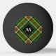 Green, black, red and white tartan design. Seamless pattern. Custom text and monogram.