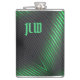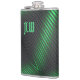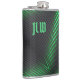 Green Black Stripes Techno Abstract with Initials Hip Flask