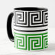 Green and Black Greek Key Fret Geometric Seamless Repeat Pattern Design On White Background