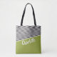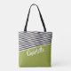 Green Black White Striped Pattern Personalised Tote Bag
