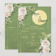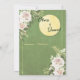 Featuring a lush green background adorned with delicate floral accents, this design captures the beauty of nature and celebration.