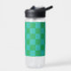 Green Blue Chequered Gingham Pattern Water Bottle