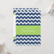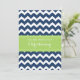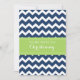 Modern and colourful dark navy blue and bright lime green chevron zigzags stripes christening invitation for boy.
