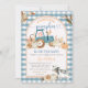 Elegant Blue Tractor Farm Animals Autumn Leaves Baby Shower Party Invite