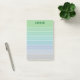 Striped post it notes personalised with your name. Green and blue post it notes with a gradient from green to blue to grey. Post it with a green and blue gradient and your name in dark green.
