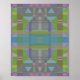 Colourful geometric shapes pattern, custom made artwork in prominent shades of green, blue, purple, pink and with additional shades of silver, grey, gold. Elegant trendy digital art design.