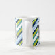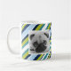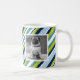 Cute personalised photo mug with a trendy green, blue and white stripe pattern background. Add your own personal touch to a mug by adding photos of your kids, pets, and other family members.
