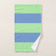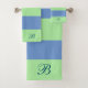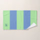 Modern elegant geometric green stripes over a changeable blue background and customisable monogram.