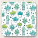 Green & Blue Watercolor Succulent Pattern Coaster