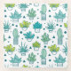 Green & Blue Watercolor Succulent Pattern Glass Coaster