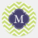 Green & Blue Zigzags Pattern Monogram Classic Round Sticker