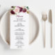This green blush burgundy floral dinner menu card is perfect for a rustic wedding. The design features elegant green, blush, purple, red and burgundy hand-drawn flower bouquets, inspiring natural beauty.
