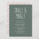 This green boho polka dot Christmas jingle and mingle invitation is perfect for your modern bohemian country farmhouse-inspired holiday party. The classic rustic yet delicate font gives it an earthy vintage look while keeping it cute and simple. The polka dots come in earth tones of red, sage green, blush pink, terracotta, rust, and tan. The design is excellent for your natural fun and casual season greetings.