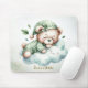 Green Boho Sleeping Teddy Bear Cute Mouse Pad