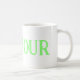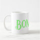 An elegant and fun white mug featuring the French greeting for hello in a fresh, vibrant green modern font. Enjoy.