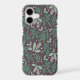 Add a touch of nature to your phone with this cute patterned case featuring green botanical foliage, spring leaves, and white berries on a dark fig purple background.