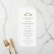 This elegant botanical wedding menu card design features a green sprig of leaves, on a clean white background. We have used art from LABFcreations.