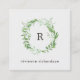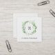 Green Botanical Leaves Wreath and Monogram Square Business Card