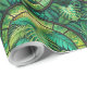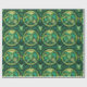Green botanical-themed wrapping paper featuring repeating circular patterns with leafy designs. The image shows both an unrolled and flat view.