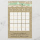 The warm inviting look of burlap with a neutral soft green ribbon and lace printed bingo card design for a fun shower game to compliment any rustic, country style baby shower or wedding shower.