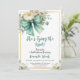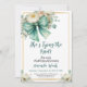 A stylish bridal shower card featuring elegant watercolor florals, greenery, and a bold green bow. The soft pastel details and modern layout make it a beautiful choice for celebrating love and friendship in a timeless and feminine way.
