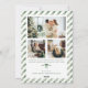 Wish family and friends a Merry Christmas with a personalized DIY green bow Christmas photo Christmas card showcasing your family on the front wrapped up like a Christmas present under a vintage green bow, and a back side with 3 family pictures and an editable note in a portrait orientation.
