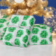 Holiday wrapping paper design of all over bows in green with a slight green shadow of a box behind each one.