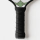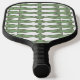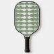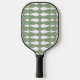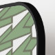 This pickleball paddle has an art deco design of triangles and diamonds that look like bowties in light green and sage green.