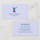 Business card featuring a Green-breasted Mango hummingbird on a light purple background. The font, font size and colour can be changed by clicking on "Customise further".