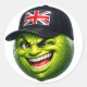 had a bit of banter to your life with this cheeky green lad featuring a winking grinning lime green character sporting a classic Union Jack baseball cap. These round stickers are full of personality perfect for laptops phone cases, party bags or just for a laugh high-quality vibrant and ready to stick anywhere that needs a bit of great British