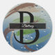 Green, Brown and Beige Brushstroke Monogram Classic Round Sticker