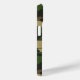 Customise this multi-hued green and brown camouflage iPhone 15 case with your your name in a trendy modern CAP font in brown on khaki. It's masculine and perfect for your favourite military, hunting, country or outdoorsman!