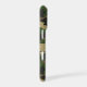 Customize this multi-hued green and brown camouflage iPhone 17 pro case with your name in a trendy modern CAP font in brown on khaki. It's masculine and perfect for your favorite military, hunting, country or outdoorsman!