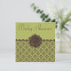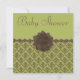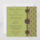 Green & Brown Damask, Flower & Pearls Baby Shower Invitation